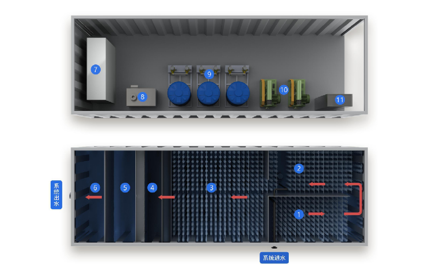 3044永利集团“源方舱”医疗废水处理设备是基于功能菌强化型MBR、硫基混合营养型生物滤池、微电流电解和臭氧催化氧化等优选技术的“深度处理-全面消杀”组合工艺及装备。