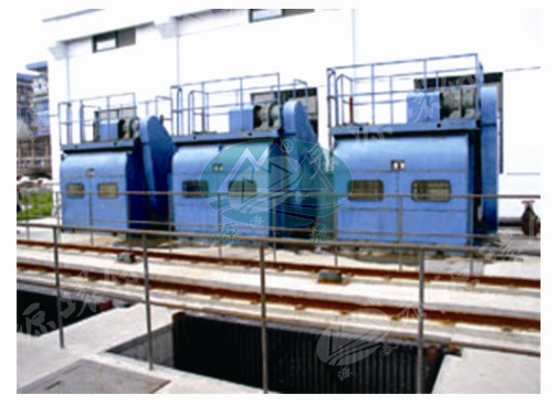 该设备采用回转式,由一块块网板拼成的滤网带形成过水栅面,当污水流过时,大于栅隙的杂物被拦截,运行时滤网作循环连续回转,将截留在网上的杂物提升至顶部后,靠压力水将杂物冲落至接料槽内流出,作进一步处理,滤网具有很强的自净能力,不会发生堵塞现象。