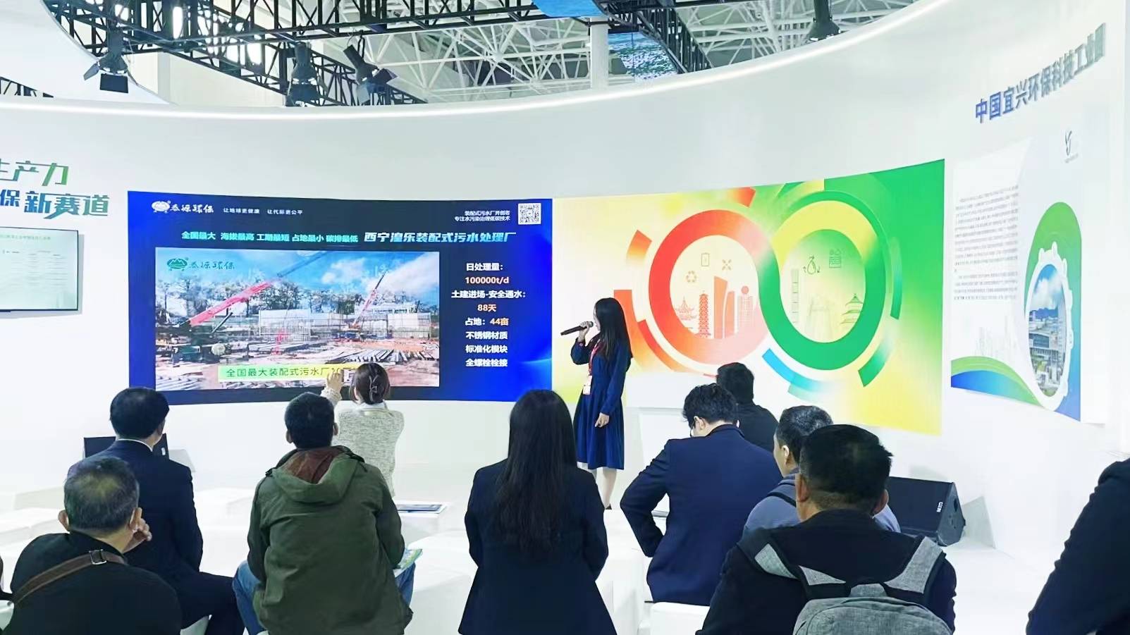 本次展会,3044永利集团在中国环保产业协会主办的生态环境科技创新成果推介会、宜兴市人民政府举办的宜兴环保产业重点技术装备推介会中分别以《十年磨一剑 低碳循环装配式污水(净水)厂创新与实践》、《新质生产力引擎驱动低碳可循环装配式污水(净水)厂革新发展》为主题进行宣讲,深度剖析了装配式污水(净水)厂在设计、建设和运营过程中的关键技术突破与实践应用,并与现场观众就3044永利集团如何依靠新质生产力驱动企业科技创新发展的历程和关键点进行交流分享。