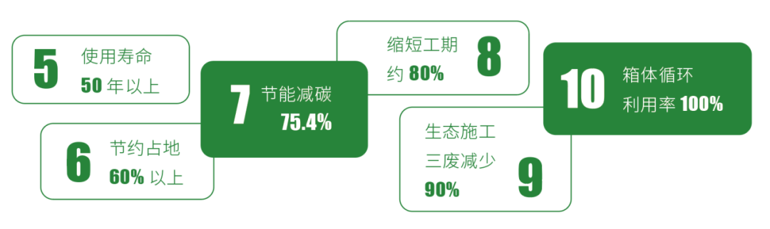 具有使用寿命50年以上、节约占地60%、节能减碳75.4%、缩短工期80%、生态施工三废减少90%、箱体循环利用率100%等优势。同时采用特殊的布水、布气、排泥方式以及优势微生物菌,对工艺进行升级优化,提升运营效果和效率,实现了水质净化项目的资源、能源节约。