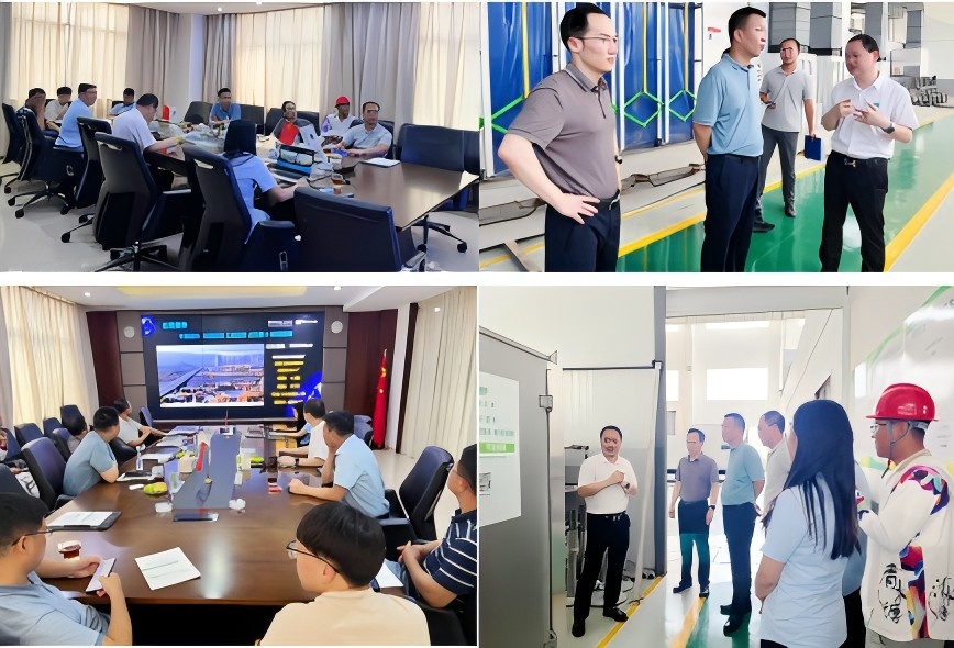 交流中,公司总经理潘海龙对无锡水务集团、鑫明新能源代表的到来表示由衷感谢。企划部负责人曹晖就公司发展历程、装配式污水(净水)厂核心技术、典型案例、标准化模块化装配式智能制造产线进行详细讲解,并前往观察光伏项目现况。