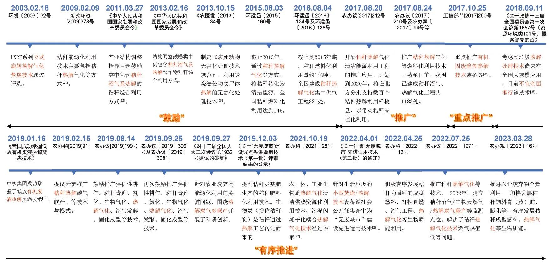 图2 我国废弃物热解技术相关政策发展简述