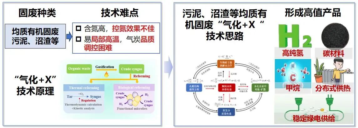 开发了与污泥、沼渣等有机固废相匹配的“气化+X”耦合产品高值利用技术,实现了气化产品气高值化利用。