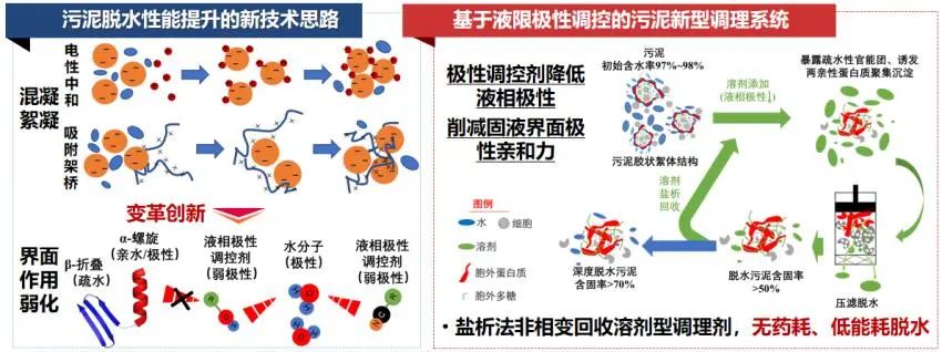 基于液限极性调控的污泥新型调理系统,实现了污泥水-固分离由非选择性破壁溶胞向界面极性力靶向削减的变革式创新。